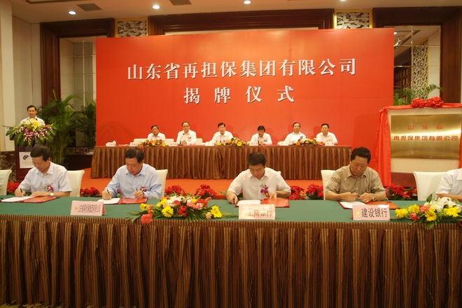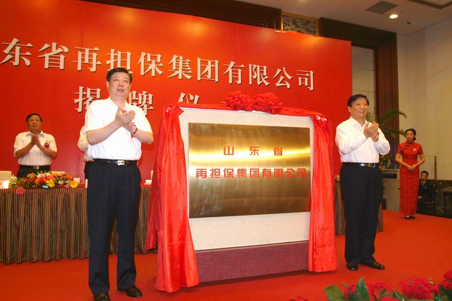 2009年9月3日上午,山东省再担保集团有限公司揭牌仪式在济南隆重举行。省委书记、省人大主任姜异康、省委副书记、省长姜大明出席了仪式并为公司揭牌。省委常委、常务副省长、省国资委党委书记王仁元致辞,省国有资产投资控股公司总裁、党委书记刘长锁介绍了再担保集团公司的筹备情况。揭牌仪式由省政府副秘书长兼省金融办主任张超超主持。省政府秘书长张万青、副秘书长蒿峰,省委副秘书长颜世元,省政府省直有关单位、各市人民政府、各大银行、担保机构及新闻媒体的代表共200多人出席了揭牌仪式。仪式上再担保集团公司还与5家银行签订了合作框架协议。