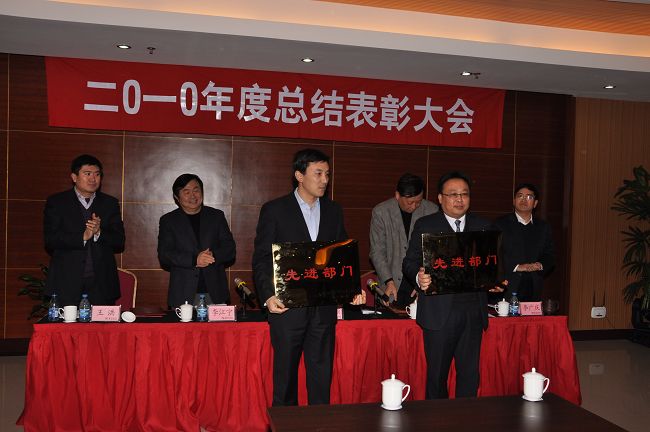 1月27日,公司本部隆重召开2010年度总结表彰大会,对综合部、财务部2个先进部门和代金宏、王玲等10名先进工作者予以表彰。公司总裁、党委书记刘长锁作了讲话,充分肯定了各部门及员工一年来所取得的工作成绩,总结经验,分析存在的问题,对2010年工作提出了要求。副总裁、党委委员李江宁主持会议,副总裁、党委副书记韩大鹏宣读了《关于表彰2010年度先进部门和先进工作者的决定》,先进部门部长代表李欣胜、先进工作者代表王玲作了发言。公司其他领导李广庆、王洪出席会议,本部全体员工参加了会议。
