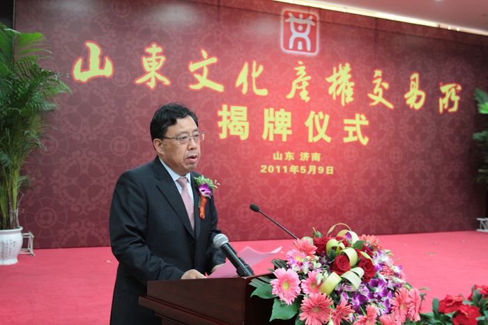 5月9日上午,山东文化产权交易所(以下简称山东文交所)在山东大厦揭牌成立。山东文交所是由山东产权交易中心和大众报业集团分别出资500万元人民币共同设立的文化资本对接平台。山东省人民政府副省长黄胜,省里老领导、省珠宝协会会长陈延明为文交所揭牌,省直有关部门、部分金融机构以及其他省市产权交易所的代表出席了仪式。