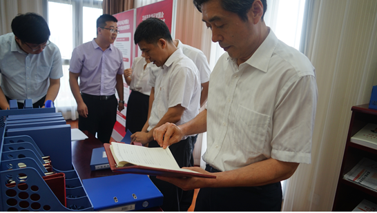 8月8日上午,省委主题教育第十八巡回指导组副组长韩斌,指导组成员田辉、杨振宇、刘思峰一行到公司检查指导主题教育开展情况。指导组采取到总部、权属单位、基层党支部进行三级检查的方式,通过查看资料、实地检查、支部座谈等形式进行全面综合指导。公司党委书记、董事长李广庆,党委副书记、董事刘正希陪同检查。