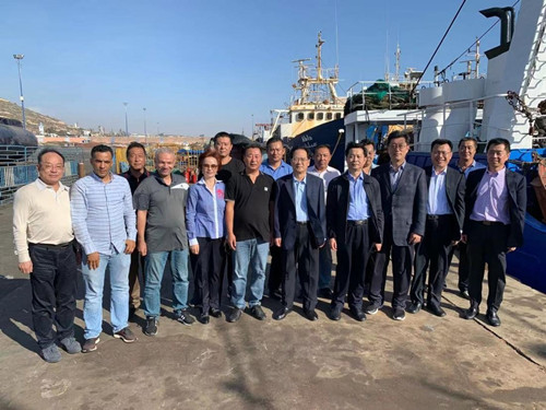 代表团实地考察了山东省远洋渔业有限公司在摩洛哥阿加迪尔远洋基地的工作情况,赴渔港查看渔船状况、配套设施建设等情况,体验船员工作、生活条件,并与公司合作方进行洽谈。付志方向中方员工表示慰问和敬意,对渔代处的工作给予充分肯定,他指出,山东远洋渔业公司积极响应山东省实施“走出去”的战略号召,组建远洋拖网生产船队,在摩洛哥王国开启了过洋性渔业捕捞生产的先河,促进了山东省渔业产业的转型和发展。多年来,通过大力发展过洋性渔业产业,拓展了现代渔业的生存空间,带动了当地经济发展。山东省将结合实际制定远洋渔业的扶持政策,积极支持远洋企业在境外的发展,为远洋渔业的长远发展奠定基础,希望山东远洋继续保持可持续发展,为山东省高质量发展做出新贡献。