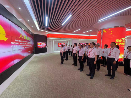 参观结束后,李广庆带领大家面向党旗,举起右拳,重温入党誓词,铿锵有力的宣誓声响彻大厅。