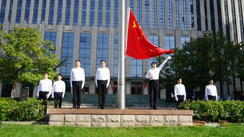 9月30日,山东国投公司组织总部员工在办公驻地参加省属国资国企“庆国庆 升国旗”仪式,庆祝中华人民共和国成立72周年,全体干部职工深情高唱国歌,祝福祖国国富民强、繁荣昌盛。党委副书记、总裁王洪与在家党委常委和经理层成员出席仪式。
