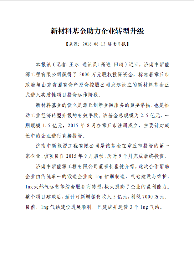 (济南日报)新材料基金助力企业转型升级