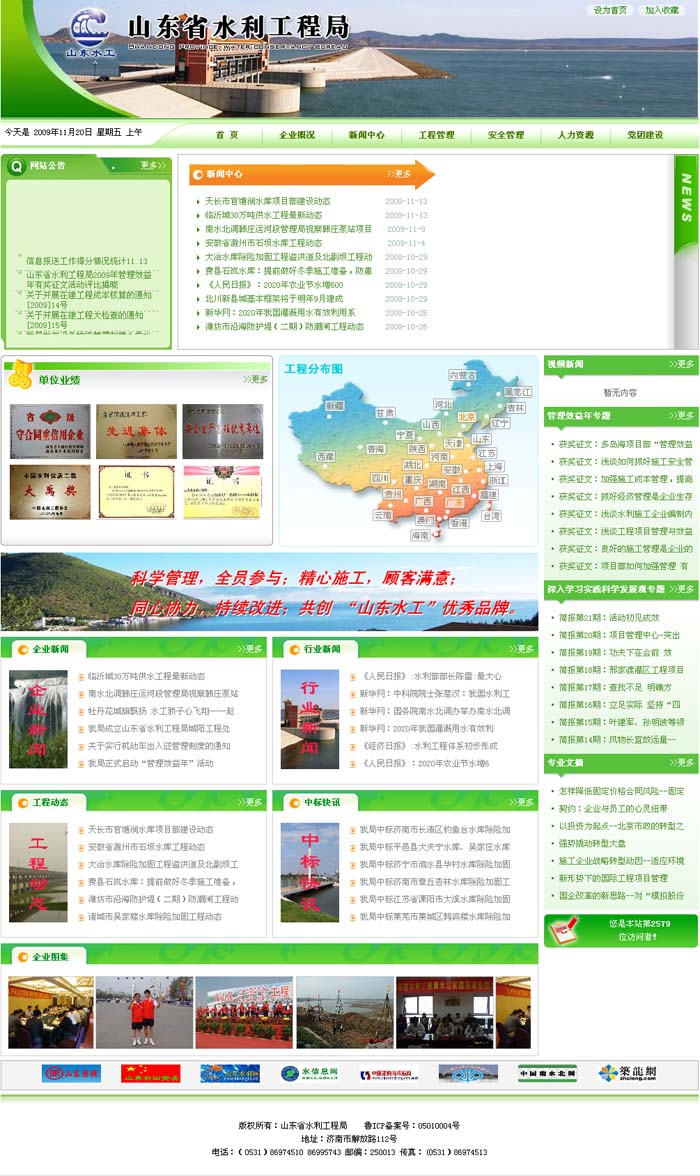2009年10月26日,山东省水利工程局新版网站(http://www.sdsg.cn)正式开通运行。