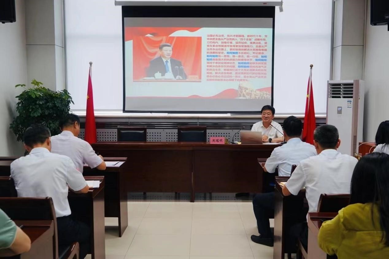 7月6日,党委常委、纪委书记,省监委驻公司监察专员刘冠明到轻工供销公司讲授专题党课,轻工供销公司党委书记、董事长苏为清主持。