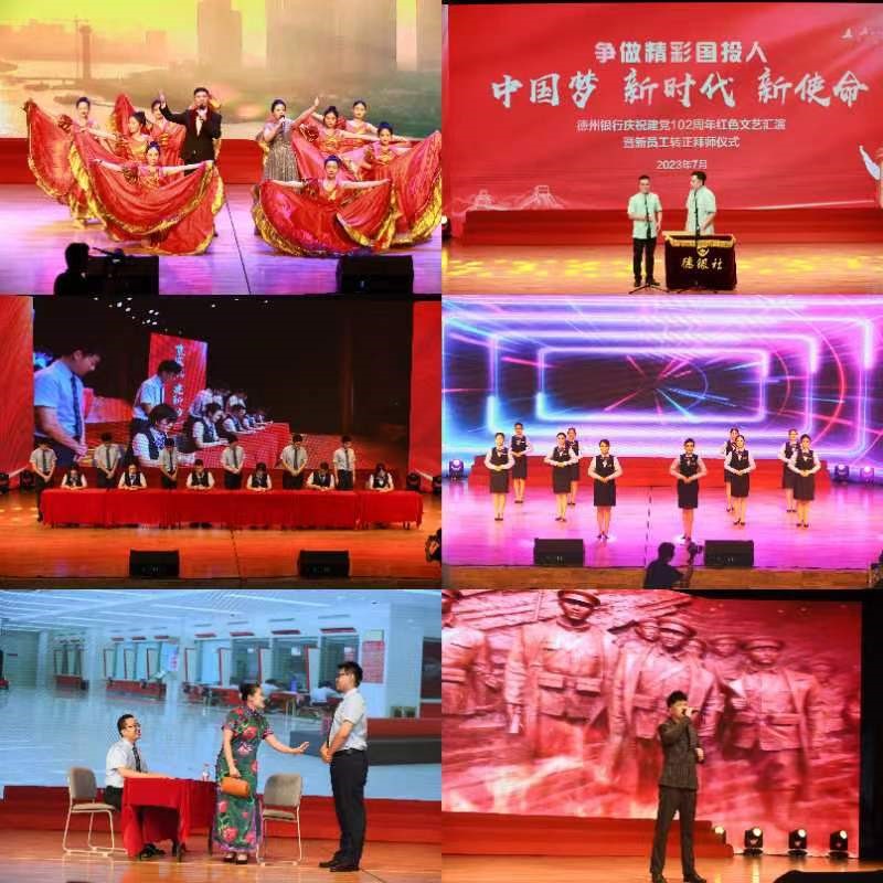 为热烈庆祝中国共产党成立102周年,深入贯彻落实党的二十大精神,推动学习贯彻习近平新时代中国特色社会主义思想主题教育走深走实,7月21日,德州银行举办了“中国梦 新时代 新使命”红色文艺汇演暨新员工转正拜师活动,展现新老员工风采,激扬青春奋进力量,营造争做精彩国投人的热烈氛围。