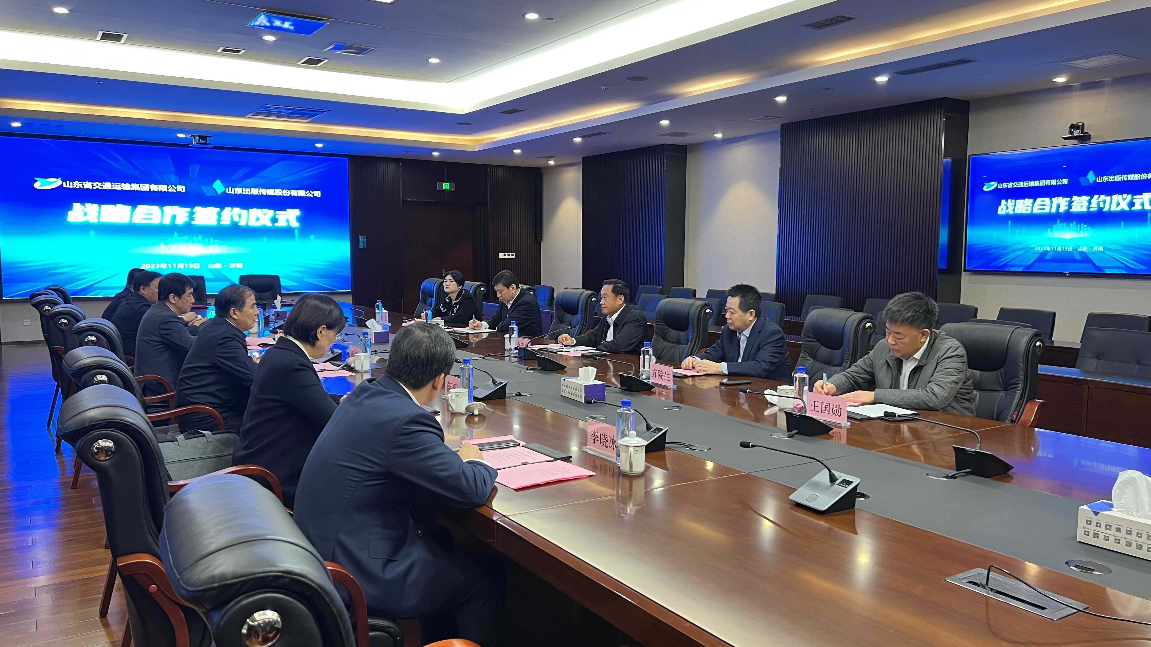 11月19日,山东交运集团与山东出版传媒股份有限公司举行战略合作协议签约仪式。山东国投公司党委副书记、董事、董事会秘书兼交运集团党委书记、董事长卢连兴,山东出版传媒股份有限公司党委副书记、总经理申维龙出席签约仪式。