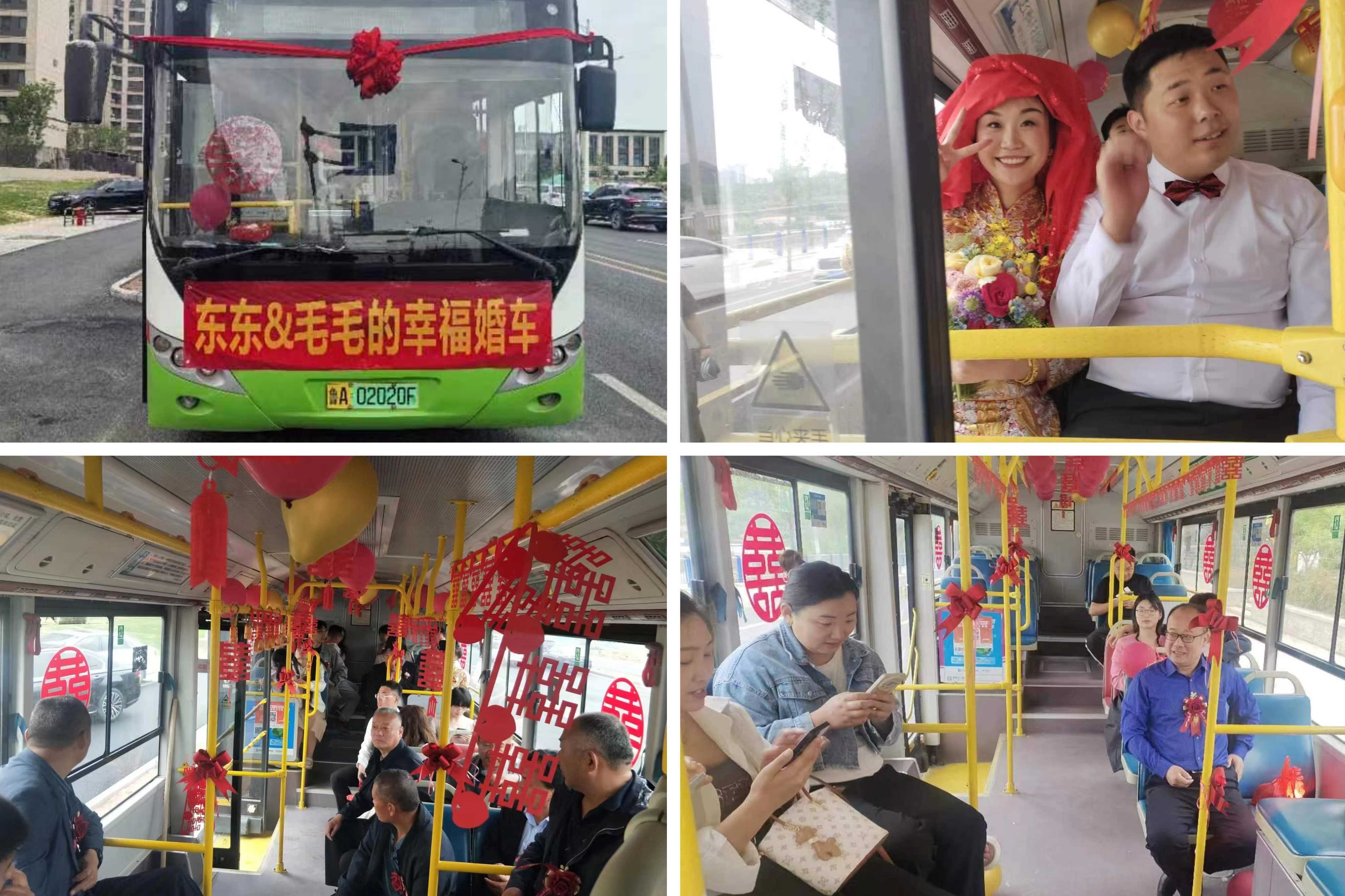 5月4日,济南长清区的一对新人在亲友的陪伴和见证下,登上了好运巴士为他们私人订制的公交“幸福婚车”,随着一声响亮的“发车令”,开往“幸福站”的公交车,一路奔驰,一路欢笑,满载着祝福和期望到达婚礼会场,这种新潮别致的方式,不仅让婚礼与众不同,也让亲朋好友们惊喜不已,收获了一份难忘的幸福记忆。公交车变身现代版“花轿”,为这对新人开启了“爱的旅程”。