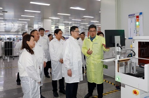 张松一行先后到公司生产车间、实验室、展厅等实地走访,详细了解公司生产经营、科技创新、产业布局等情况。召开座谈交流会,听取公司治理、上市推动及业务开展有关情况,对公司上市有关工作提出指导意见。