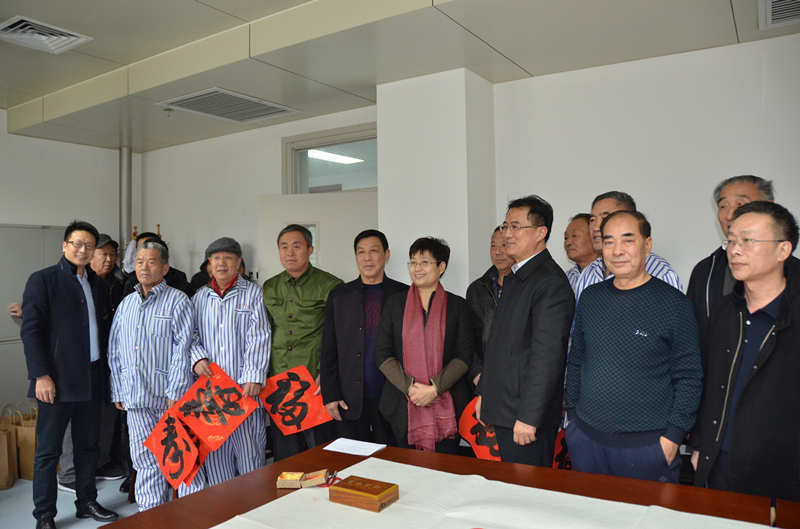 2019年1月29日,新春佳节来临之际,轻工供销公司党委书记、董事长苏为清同志邀请中国书法家协会会员、山东省书法家协会组联部委员、山东大学书法研究院副院长张豪同志,带领轻工公司职工前往山东省荣军总医院看望慰问荣军老战士,为老战士送“福”送“寿”,送上新年的慰问和新春的祝福。