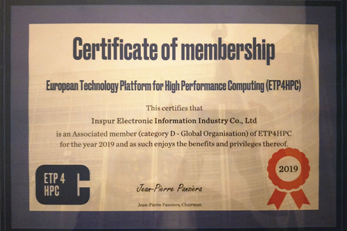近日,欧洲高性能计算组织(European Technology Platform for High Performance Computing, 简称ETP4HPC)在其荷兰萨森海姆召开的2019年会上正式宣布浪潮成为ETP4HPC会员。会上,ETP4HPC主席Jean-Pierre Panziera 向浪潮AI&HPC全球总监Vangel Bojaxhi颁发会员证。