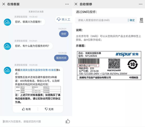 在确保复工生产疫情防控所需的服务器等信息化设备的同时,浪潮集团保持了数据中心产品技术服务的高效畅通,400热线7*24保持畅通,微信公众平台“浪潮专家服务”人工在线服务同步升级到7*24,支持通过远程视频方式提供技术支持服务。对于医疗、政府应急等疫情防控相关的行业客户,浪潮将调配服务资源,优先保障相关服务。