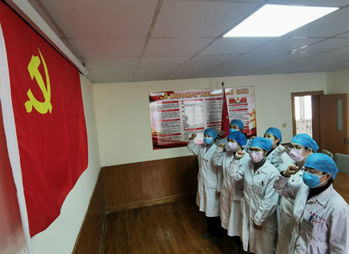 在医院所有防疫工作中,最危险、最困难的便是负责社区联防联控、群防群控的地毯式排查工作。为此,医院专门成立了由分管医疗工作的副院长商夕乐、工会主席兼医务科主任刘钰娜、护士长王玉芬、团委副书记兼社区主任邓志华、病房主任朱晓艳、助理医师毛一帆6名党员组成的党员疫情防控突击队。在正式出征之前,6名党员面对党旗重温了入党誓词,并庄严宣誓“不怕苦、不怕累、不怕危险,党指到哪里就打向哪里,坚决完成上级交给的疫情防控任务”。