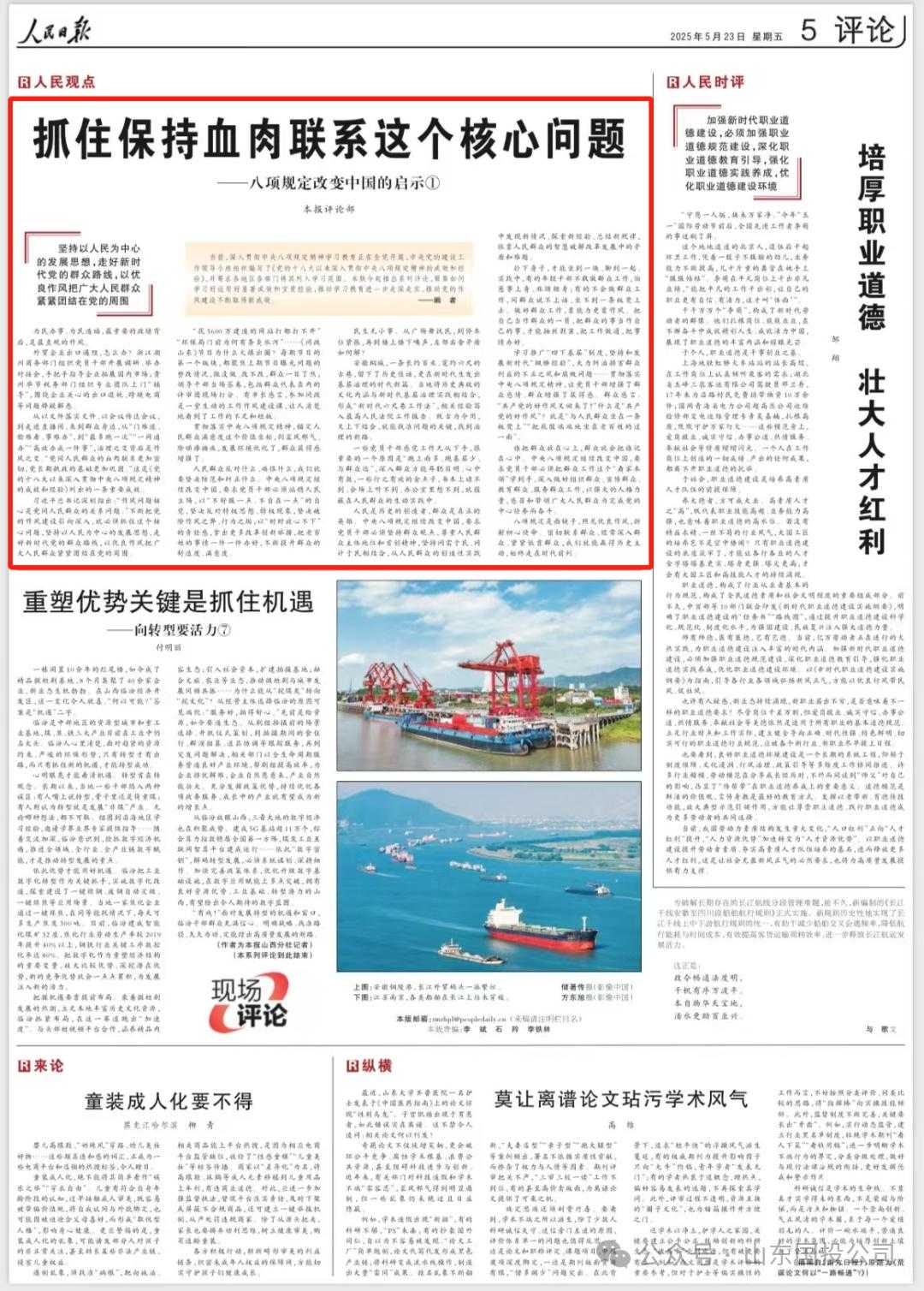 当前,深入贯彻中央八项规定精神学习教育正在全党开展,中央党的建设工作领导小组组织编写了《党的十八大以来深入贯彻中央八项规定精神的成效和经验》,并要求各地区各部门将其列入学习范围。人民日报近日推出三篇评论,聚焦如何学习好运用好显著成效和宝贵经验,推动学习教育进一步走深走实,推动党的作风建设不断取得新成效。